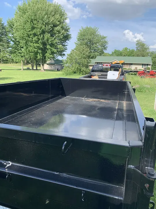 Heavy-duty trailer with an open-top box and a hydraulic lifting system designed to haul